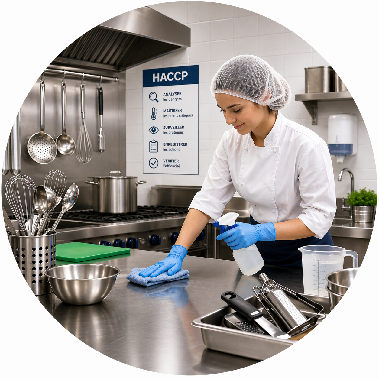 Le système HACCP (Hazard analysis critical control point) est un système de gestion de la sécurité alimentaire qui vise à identifier et à prévenir les risques dans le processus de production alimentaire dans un établissement. Le système HACCP est basé sur sept principes, qui sont :