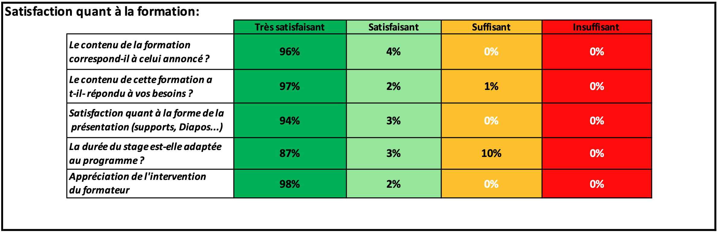 une meilleure assimilation des points abordés. La formation est assurée à