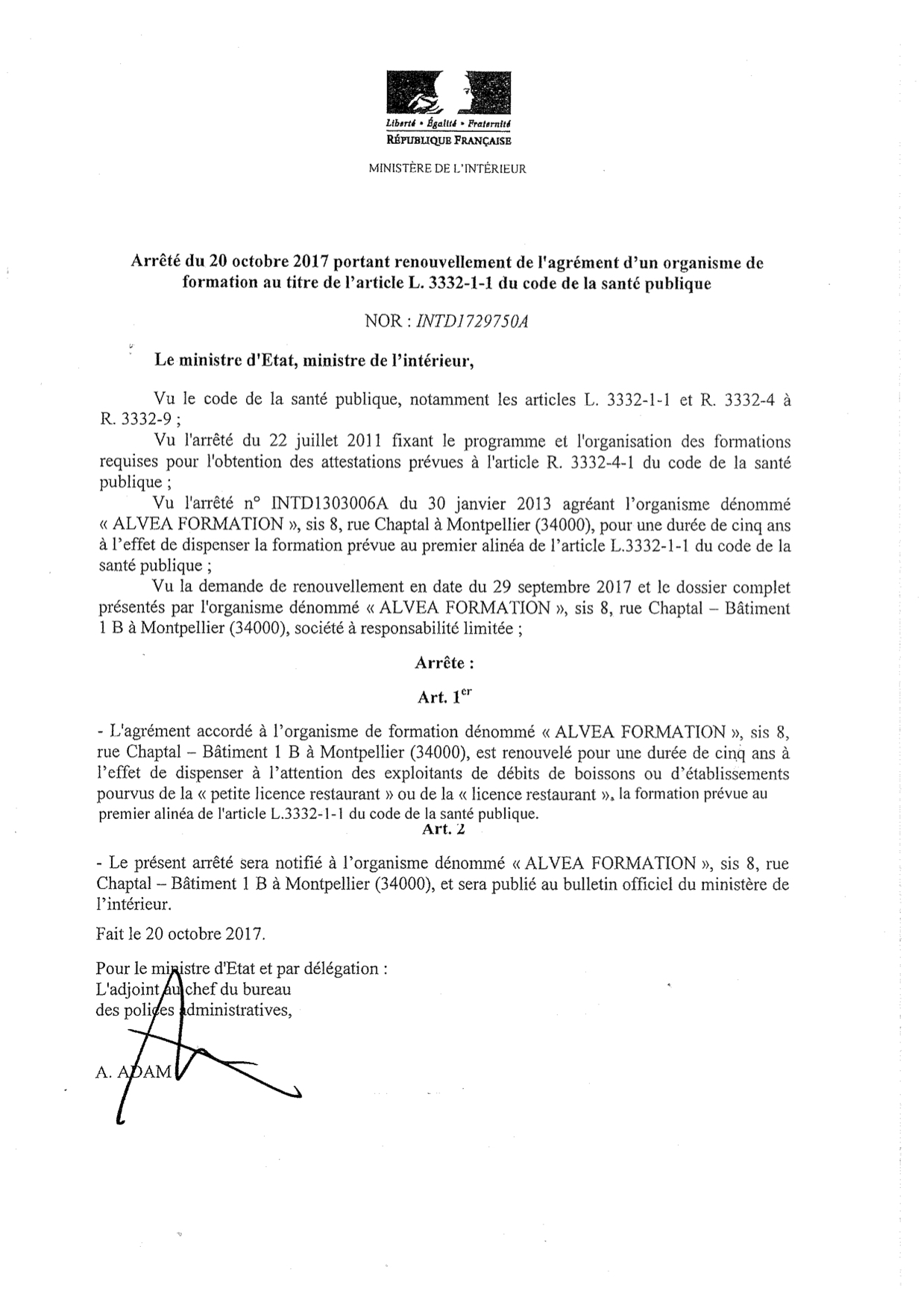 Après une premier bilan d’activité de 5 années, le Ministère de l’intérieur a réitéré sa confiance à notre organisme en décidant de renouveler son agrément pour cette formation. Cliquez sur l’image pour accéder à l’agrément.