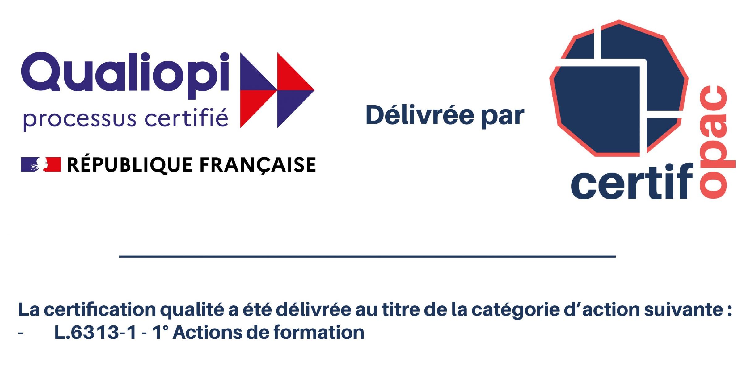 • Notre organisme a été auditionné puis certifié QUALIOPI pour l’ensemble de nos formations.